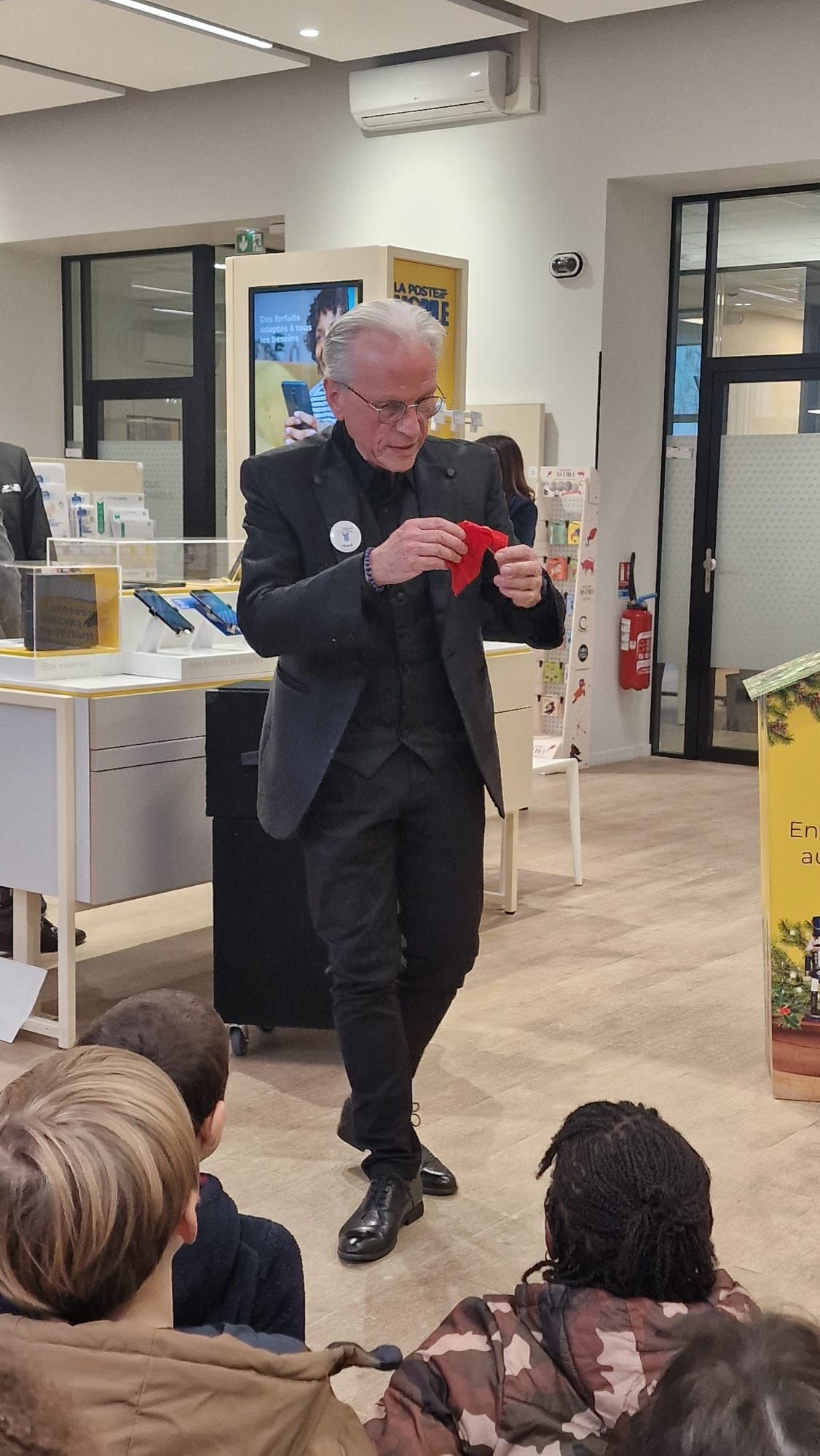 Au bureau de poste de Tours Béranger, lors du lancement officiel de l’opération, une classe de l'école Clocheville a pu vivre un moment hors du temps aux côtés de deux magiciens, Hervé Brunet, bénévole de l'association et Achillemagic, véritable star des réseaux sociaux. Rires, étonnement, applaudissements… tout y était !